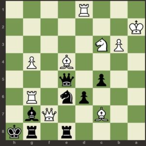 At first I thought Qh2+ was winning, but I couldn’t make it work (eventually white can pin the queen with Rh1). Then I realized black has a spectacular mating attack: