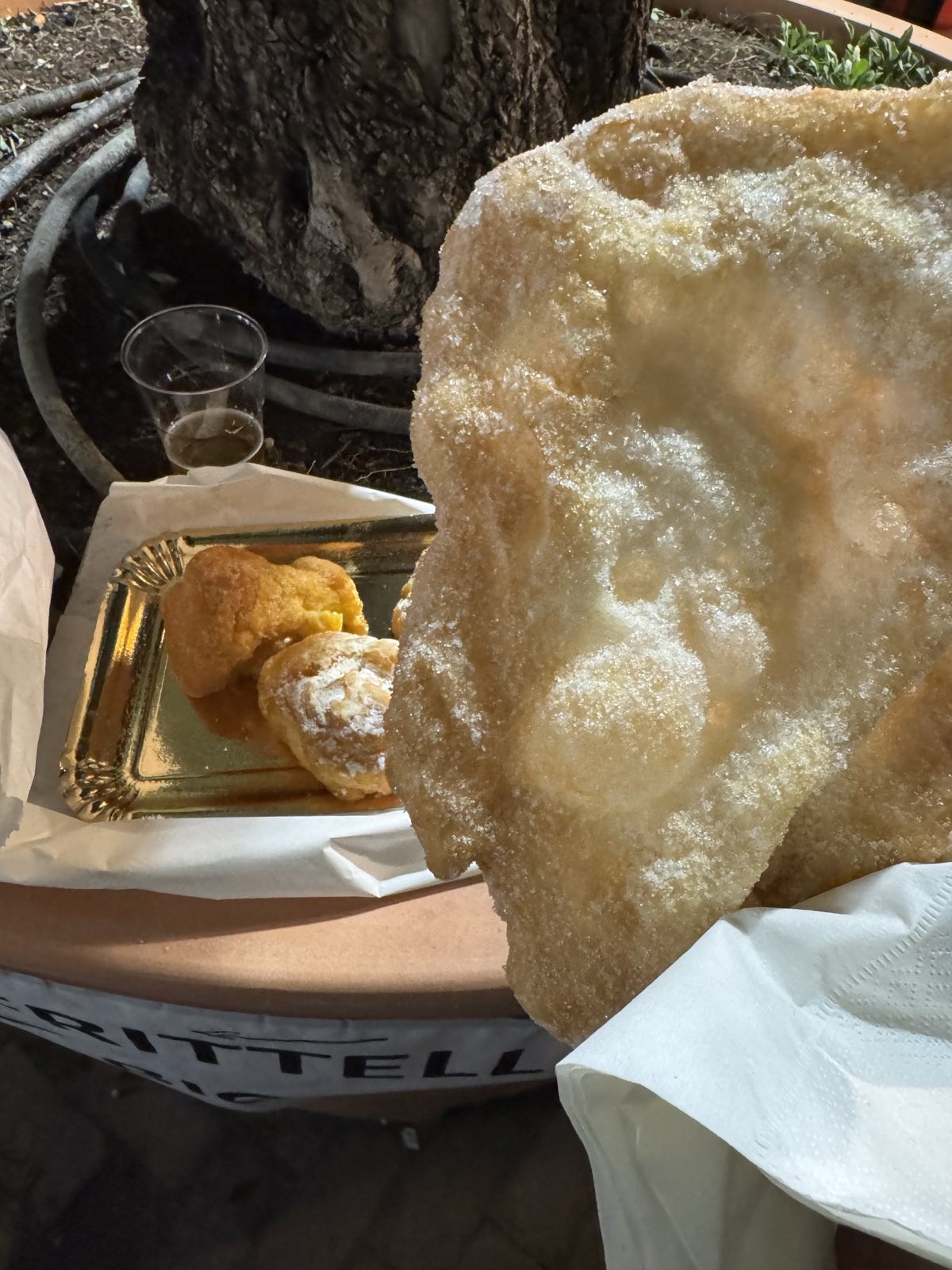 There are Bignè di San Giuseppe “Frittelaro” and fritelle. As the Romans tell it, to help support the Holy Family St. Joseph supplemented his income by selling fried pastries.
