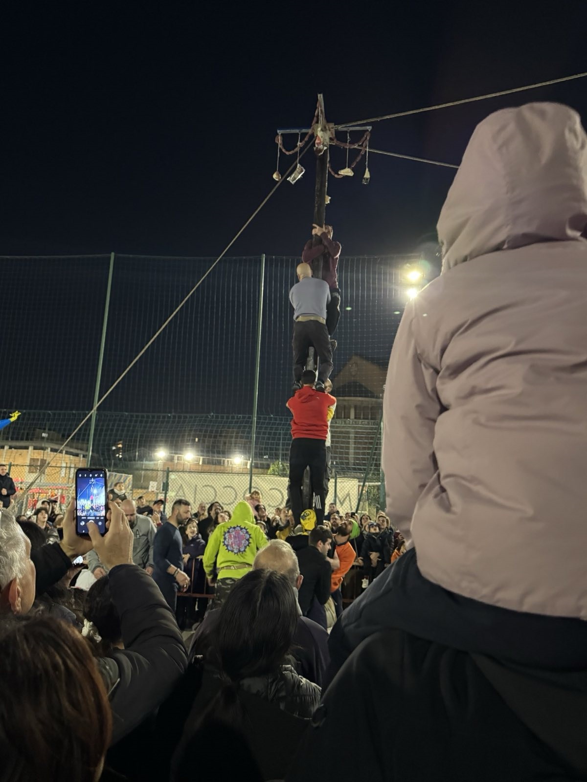 And there is a tradition of trying to climb a greased pole with has goodies at the top.