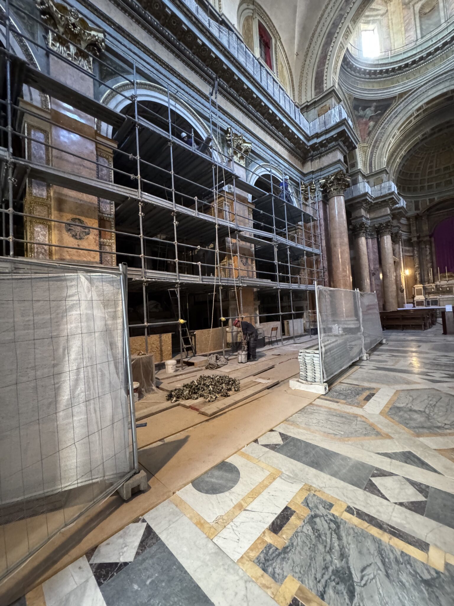 I went to The Parish™. The scaffolding is coming down in the nave before Holy Week! That means that the side chapels will be open and beautifully restored.